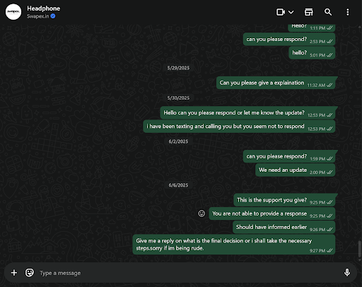 I lost one of my AirPods last month, and I was devastated. Thankfully, I came across SWAPEX, and they offered me a brand-new replacement at a reasonable price. The entire experience was seamless, and I’m especially grateful for the amazing delivery speed. Rahul made sure to address all my concerns and answered all my questions patiently. The AirPod connected super quickly, and I could barely tell the difference from my original pair. Highly recommend SWAPEX for their customer handling and quick service.